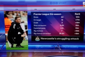 體育資訊9月22日訊 英超第5輪比賽,紐卡客場(chǎng)0-0戰(zhàn)平伯恩茅斯。據(jù)BBC統(tǒng)計(jì),紐卡本賽季多項(xiàng)進(jìn)攻數(shù)據(jù)排名英超后幾位。