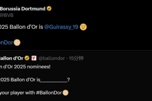 體育資訊9月22日訊 多特官方發(fā)推調侃,表示吉拉西是2025年的金球獎得主。