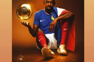 孔德社媒曬出登貝萊身穿法國球衣的照片,配文寫道:“恭喜我的兄弟登貝萊?!?/p>