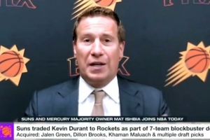 “(交易重點是)我們得到的球員。你知道,杜蘭特是一位偉大的球員,沒有人會質(zhì)疑這一點,他只是不適合我們未來的發(fā)展方向。顯然,他擁有輝煌的職業(yè)生涯,但他不適合我們未來的計劃,我們換回了一些很棒的球員。我們得到了狄龍-布魯克斯,一個意志堅強(qiáng)、贏球型的家伙,我們喜歡這一點,這就是我們在這里要打造的。還有一個23歲有潛力的球員,一個主力得分手,去年打滿了82場比賽,我們喜歡杰倫-格林。我們還得到了第10順位選秀權(quán),加油,馬盧阿奇!我們很興奮,通過其他選秀權(quán),我們得到了弗萊明和科比-布雷亞,我們得到了五名喜歡的球員。因此,我們展望未來,不回首過去。顯然,與凱文的合作沒有成功,我們祝愿他一切順利,但對我們來說,未來我們喜歡我們得到的球員。我們喜歡我們正在建設(shè)的東西,這需要時間。這不會一蹴而就,但我們對在菲尼克斯未來的發(fā)展感到非常樂觀?!?/p>