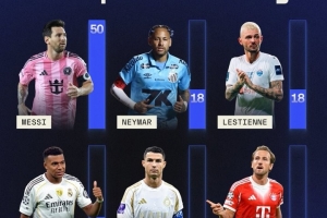 體育資訊9月25日訊 SofaScore統(tǒng)計了他們數(shù)據(jù)庫中獲得10分評價的次數(shù)排名,梅西50次遙遙領(lǐng)先。