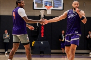 體育資訊9月28日訊 今天,太陽官方曬出了球隊訓練照,其中新援杰倫-格林和狄龍亮相。
