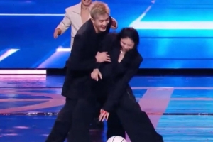 郭艾倫與王思雨在比賽中爭(zhēng)搶球權(quán),艾倫為搶球一把將思雨推開。