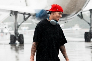而在登機(jī)的時(shí)候,天下正下著不算小的雨,但黃蜂眾將沒(méi)有一個(gè)選擇撐傘,都是冒著雨不慌不忙的上飛機(jī)。