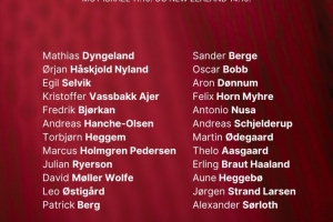 后衛(wèi):阿耶爾(布倫特福德)、比約坎(博德閃耀)、漢切-奧爾森(美因茨)、赫格姆(博洛尼亞)、霍姆格倫-佩德森(都靈)、萊爾森(多特)、沃爾費(狼隊)、厄斯蒂高(熱那亞)