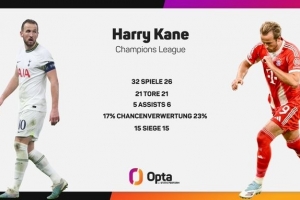 體育資訊10月1日訊 根據(jù)統(tǒng)計,凱恩為拜仁出戰(zhàn)26場歐冠,已經(jīng)打入了21粒進球,這一數(shù)字已經(jīng)追平了他在熱刺效力期間32場歐冠比賽的總進球數(shù)。