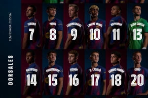 全文摘要:巴薩官方公布一線(xiàn)隊(duì)新賽季球員號(hào)碼。門(mén)將特爾施特根穿1號(hào),隊(duì)長(zhǎng)阿勞霍4號(hào)。萊萬(wàn)身披9號(hào),亞馬爾獲 coveted 10號(hào)。新援拉什福德穿14號(hào),庫(kù)巴西將5號(hào)收入囊中,德容則身披21號(hào)。