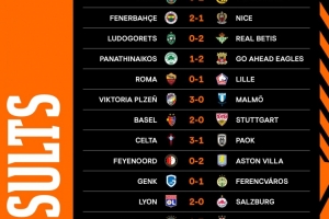 全文摘要:歐聯(lián)杯第二輪結(jié)束,羅馬0-1負里爾,費內(nèi)巴切2-1勝尼斯,巴塞爾2-0勝斯圖加特,費耶諾德0-2負維拉。其他比賽中,凱爾特人0-2負布拉加,里昂2-0勝薩爾茨堡紅牛,波爾圖2-1勝紅星。