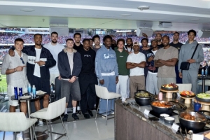 體育資訊10月3日訊 快船官推曬照,全隊一起觀看橄欖球洛杉磯公羊VS舊金山49人的比賽,并拍攝全家福合影。