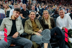 歐洲籃球聯(lián)賽,拜仁主場(chǎng)97比88擊敗紅星,拜仁俱樂(lè)部主席海納、拜仁中場(chǎng)帕夫洛維奇、拜仁女足球員達(dá)姆賈諾維奇、格溫現(xiàn)場(chǎng)觀看比賽,為拜仁男籃助威。