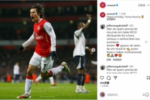 阿森納官方社媒曬出羅西基效力球隊時期的照片,配文:“生日快樂,羅西基。”