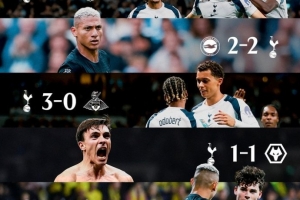 賽后熱刺官方曬出了球隊(duì)近期的戰(zhàn)績(jī):3-0西漢姆、1-0比利亞雷亞爾、2-2布萊頓、3-0唐卡斯特流浪、1-1狼隊(duì)、2-2博德閃耀、2-1利茲聯(lián)。