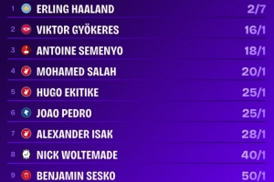 全文摘要:曼城9球領(lǐng)跑英超射手榜,哈蘭德以壓倒性優(yōu)勢成為金靴大熱門。其奪冠賠率僅為2/7,遠(yuǎn)超其他競爭者,彰顯其本賽季統(tǒng)治級表現(xiàn)。