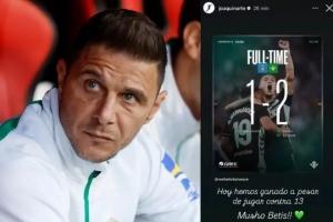 主裁判伊奧蘇-加萊奇的執(zhí)法表現(xiàn)引發(fā)許多人不滿,其中就包括華金,這位貝蒂斯名宿在Instagram寫道:“今天我們盡管是面對13個人比賽,但還是贏了?!?/p>