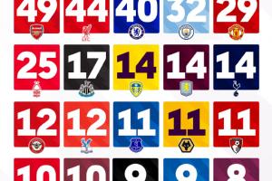 英超各隊的最長連續(xù)不敗場次一覽 ???