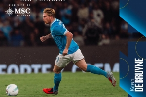體育資訊10月8日訊 那不勒斯官方宣布,德布勞內當選球迷票選的9月份最佳球員。