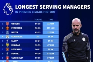4 瓜迪奧拉(曼城)9年3個(gè)月