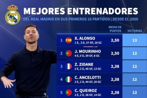 全文摘要:德國轉(zhuǎn)會市場統(tǒng)計(jì)了2000年以來皇馬主帥前16場的勝場。阿隆索以13勝高居榜首,穆里尼奧、齊達(dá)內(nèi)、安切洛蒂等名帥均以12勝并列次席,展現(xiàn)了皇馬主帥的強(qiáng)大開局能力。