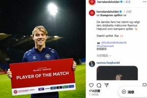 2球1助攻!官方:霍伊倫當(dāng)選丹麥6-0白俄羅斯隊(duì)內(nèi)最佳球員