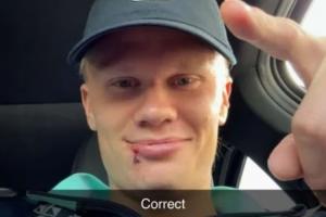 哈蘭德最初曬照解釋稱:“剛剛被大巴車門給撞了??縫了三針??”。