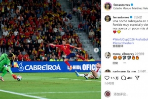 此役是費蘭-托雷斯為西班牙隊出戰(zhàn)的第50場比賽,他在社交媒體上曬出比賽照片,配文:“值得銘記的夜晚,為西班牙出戰(zhàn)50場,這是一場非常特別的比賽,勝利讓我們距離世界杯更近一步?!?/p>
