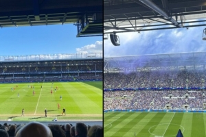 我們現(xiàn)場已經(jīng)在新球場進(jìn)行了幾場比賽,讓我們看看希爾-狄金森球場與之前古迪遜公園球場的視野相比如何。