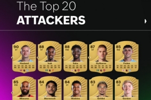 全文摘要:EA公布FC26英超攻擊手評(píng)分,哈蘭德以90分高居榜首。伊薩克與薩卡同列88分,緊隨其后。約克雷斯87分位列第四,福登與姆伯莫以85分并列第五。其余球員如沃特金斯、?;倏说纫布娂娚习?,評(píng)分從81至84不等。