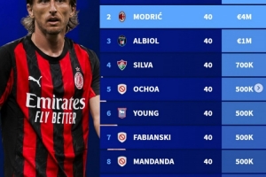 2、莫德里奇 400萬歐