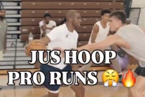 視頻中,保羅、斯庫特-亨德森、特倫斯-曼恩、扎伊爾-威廉姆斯、加爾扎、小喬丹等球員分兩隊進(jìn)行對抗。