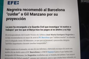 前裁判技術(shù)委員會(huì)副主席內(nèi)格雷拉及其兒子曾在2016年5月向巴薩建議應(yīng)“多加維護(hù)”與裁判赫蘇斯-曼薩諾的關(guān)系,因其年輕且有發(fā)展?jié)摿?,“未?lái)多個(gè)賽季將執(zhí)法重要比賽”。