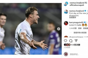 霍伊倫社媒曬出慶祝進球的照片,配文:“新工作的第一天沒有讓人失望?!?/p>