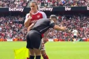 體育資訊09月14日訊 本輪英超阿森納3-0完勝諾丁漢森林,比賽中有球迷在場邊拍到了滑稽的一幕。