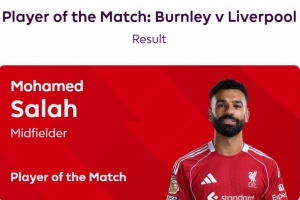 本場(chǎng)比賽薩拉赫在補(bǔ)時(shí)階段打進(jìn)點(diǎn)球絕殺,賽后也當(dāng)選英超官方球迷票選全場(chǎng)最佳球員。