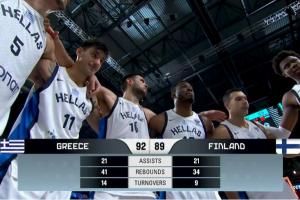 本場比賽,希臘依靠當(dāng)家球星揚尼斯-阿德托昆博的強勢的表現(xiàn)全場壓制芬蘭,從未落后!