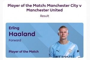 據(jù)賽后英超官網(wǎng)報(bào)道,哈蘭德當(dāng)選此役全場(chǎng)最佳球員,獲得82%的投票。