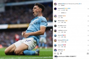 本場(chǎng)比賽福登首開(kāi)記錄,這也是他自今年1月以來(lái)首次在英超破門(mén),他也在個(gè)人社媒曬出滑跪慶祝照片,配文寫(xiě)道:“重回正軌,進(jìn)球獻(xiàn)給里奇。”