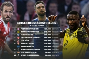 全文摘要:德甲官方公布德國俱樂部注冊(cè)會(huì)員數(shù)量榜,拜仁以41萬會(huì)員高居榜首,多特以23萬會(huì)員次之。沙爾克20萬排名第三,法蘭克福、科隆等隊(duì)緊隨其后。會(huì)員數(shù)量體現(xiàn)了各俱樂部的群眾基礎(chǔ)與受歡迎程度。