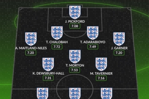 whoscored英格蘭球員本賽季聯(lián)賽評分最佳陣: