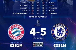 體育資訊09月17日訊 北京時間明晨3:00,拜仁坐鎮(zhèn)安聯(lián)主場迎戰(zhàn)切爾西。賽前,德轉(zhuǎn)官方回顧了2012年切爾西在安聯(lián)球場力克拜仁奪冠的歷史性一役時雙方的陣容。