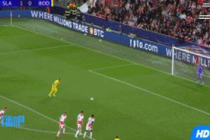 比賽第54分鐘,博德閃耀獲得一個(gè)點(diǎn)球,但霍格主罰的點(diǎn)球被布拉格門將斯坦尼克神勇?lián)涑?,錯(cuò)失扳平比分的良機(jī)!