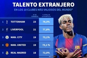 全文摘要:德國轉(zhuǎn)會市場統(tǒng)計了身價前十俱樂部的外籍球員占比。熱刺以79.3%的外援占比位居榜首,為最高;巴薩則以43.5%的占比排名末位,為最低。利物浦、曼城和曼聯(lián)的占比也均超過七成。