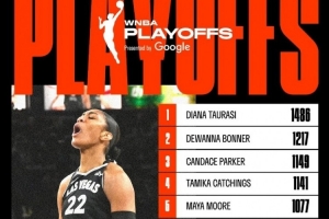 加上今天的38分,威爾遜季后賽生涯總得分來(lái)到937分,連超兩人,升至WNBA季后賽歷史得分榜第8位。